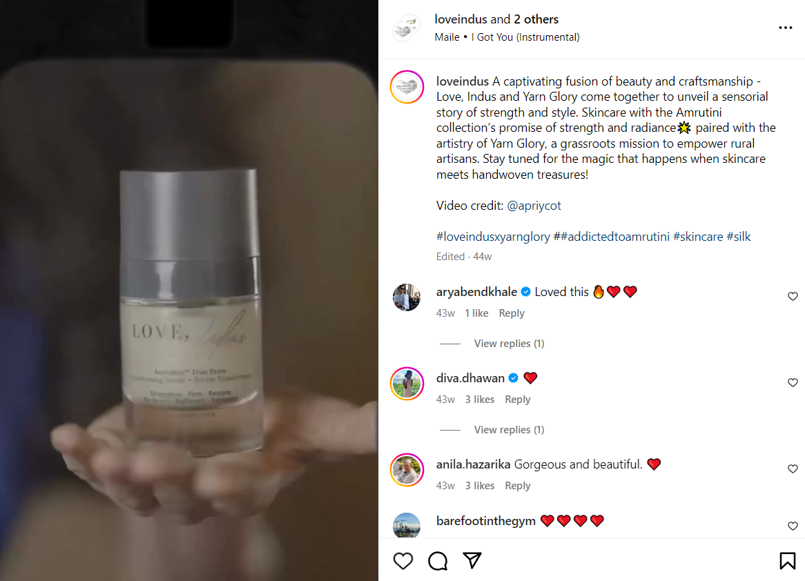 For Love Indus's holiday campaign with Yarn Glory, I developed the creative vision that blended both brands' luxury and craftsmanship. I coordinated the shoot and filming to capture high-quality visuals, then collaborated with the graphic design team by providing assets for the final videos. The result was a cohesive, visually striking campaign that generated excitement and engagement across digital platforms.